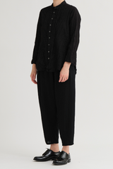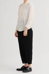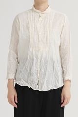 The Lawn Random Pintuck Blouse from Pas de Calais is crafted from lightweight cotton with a gorgeous crinkled texture. It features a classic collar, front button closure, long sleeves with a raw edge, pintucked tuxedo bib. A versatile piece that embodies the brand's identity.