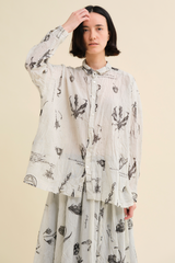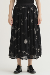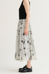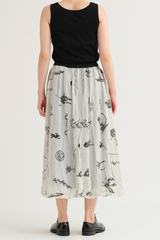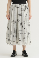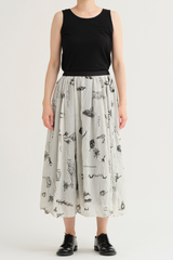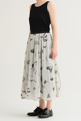 The Plant Growth Print Skirt from Pas de Calais is crafted from lightweight cotton with a crinkled effect. It features an A-line silhouette, a contrast waistband with an elasticated back detail, and a fully lined interior, all enhanced by a beautifully nature-inspired print.