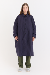 A timeless piece from Casey Casey, this long coat is crafted in L Wax cotton and shaped with dropped shoulders for a relaxed, easy silhouette. Clean and considered, it features slash pockets and corozo buttons, balancing simplicity with function. Designed for layering, it’s a quietly refined staple. Offering comfort, structure, and everyday elegance.