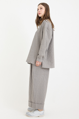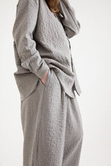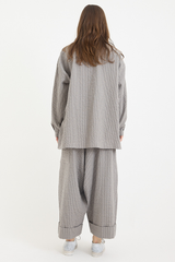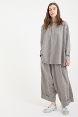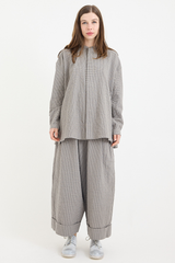 These trousers from Toogodd are crafted from midweight cotton mini gingham check with a subtle seersucker texture. They feature a concealed drawstring at the elasticated waistband, a low back patch pocket with hidden side pockets, front pleats, and deep turned-up cuffs. With a voluminous silhouette designed to elevate your everyday wardrobe, these trousers blend functionality with effortless style.
