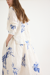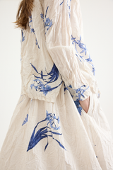 The Japonism Flower Print Skirt from Pas de Calais is crafted from a lightweight crinkled cotton. The soft cotton fabric has been printed with a Japanese floral design that evokes a sense of calm. The skirt features an elasticated waistband and internal drawstring, with pleating at the waist and delicately hand finished treatment to the fabric that creates the pleat-like wrinkles. A soft, airy take on a classic silhouette.
