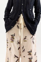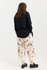 These trouser-style pants are crafted from soft cotton and feature a button-up fly, a tie belt, 4 pockets, and stylish stitched detailing at the knees. A button at the leg allows for versatile styling: wear them buttoned up and cuffed, or unbuttoned for a looser, longer fit.