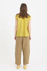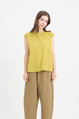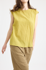This playful Apuntob Top features a vibrant tonal check pattern. The sleeveless design is highlighted by a round neckline and a button-up detail at the back of the neck. Crafted from a cotton-elastane blend, the fabric offers a slight stretch, ensuring a comfortable fit for everyday wear. This top is versatile enough to suit any occasion while adding a touch of fun to your wardrobe.