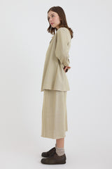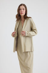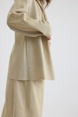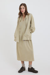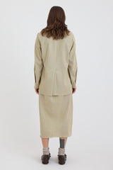 This lightweight jacket, in a stunning Sulfur hue, is crafted from a luxurious blend of linen, cotton, silk, and cashmere. Its woven design adds texture while remaining soft to the touch, with subtle tonal variation throughout. The jacket showcases a relaxed silhouette, a notched collar, and practical side pockets. Elegant gathered detailing at the sleeve cuffs add a refined touch.