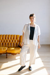 Our linen styles are made from premium European flax linen, pre-washed, and ready to wear on arrival. Some are lightly pressed - within no time the fabric will soften with wear, crinkles and wrinkles will come naturally, giving it that stunning unironed look that we have all come to love. If you would like to speed up this process, we recommend popping it in the washing machine and following the care label washing instructions.