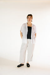 All measurements are taken in cm on a flat garment (please double for circumference). All garments are made by hand and may vary slightly.