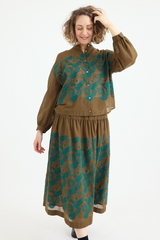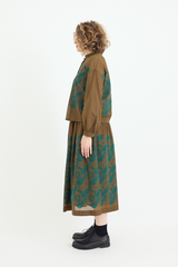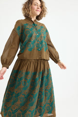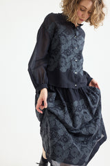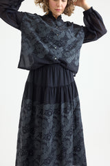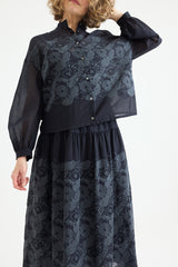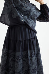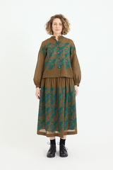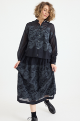 The Minä Perhonen Stitch Garden Skirt is crafted from ultra-lightweight cotton and showcases the brand's exclusive embroidered abstract flower and butterfly pattern, reminiscent of traditional techniques. This classic piece, imbued with the brand's signature playful touch, features an elastic waistband, a hip-level seam with gathering, and a light, fluid drape. The skirt is fully lined.