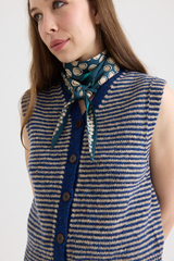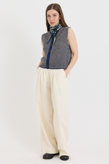Look 1: Toast - Striped Donegal V-Neck Tank - Ink/Biscuit | Toast - Corinne Cotton Linen Wide Leg Trousers | Marsell - Zucca Media Derby - Black