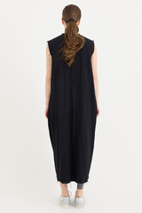 A cotton flannel sleeveless dress by Scha, featuring a subtle balloon cut removable. Designed with a round neckline, two side pockets, and raw-edge finishing. Made from a heavyweight cotton flannel, with the weight of the fabric developing a beautiful shape to it. The dress includes a removable self-tie sash that can be styled as a scarf or belt, offering exceptional versatility. This piece will soften over time and age beautifully with wear, becoming a piece of clothing that will change with you.