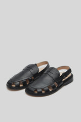 This slingback loafer is featured by its round shape and cut out front detail. They are made from high quality calfskin, its softness makes them perfect to wear all day long. Combine them with the perfect top and jeans.