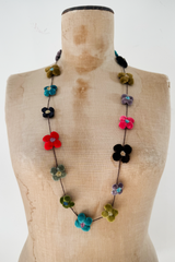 A handmade necklace by Sophie Digard, crafted with intricate crochet and embroidery. This artisanal piece is entirely handmade with great care, making it a unique and timeless addition to any look.