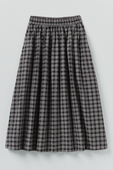 The Binding Check Gathered Skirt by TOAST is woven from an organic cotton and wool blend with a softly textured seersucker finish. Shaped to an A-line silhouette, it falls with gentle gathers that create a sense of movement. An elasticated waistband completes the skirt with comfort and ease.