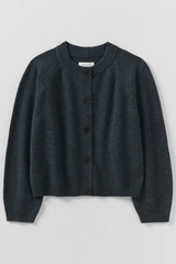 Considered shaping at the cuffs of our cardigan creates a rounded sleeve silhouette. Knitted from merino wool blended with recycled cashmere to an easy shape with a rounded ribbed neckline, then finished with large corozo buttons.