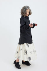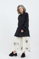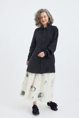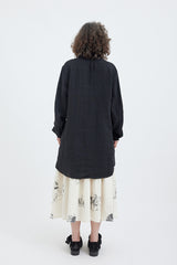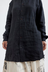 A classic button up linen shirt with a point collar and full length sleeves with swiss tabs & button cuffs. Finished with a mid-torso patch pocket and a raw edged, curved hem.