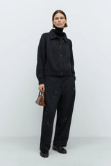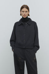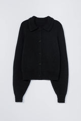 Crafted from chunky merino wool, this cardigan offers warmth and a cozy, tactile feel. Designed with a relaxed, boxy fit, it features a classic Italian collar and horn front button closure, complemented by ribbed detailing at the cuffs, collar, and hem. Effortless and easy to layer, it’s a winter wardrobe staple with understated style.
