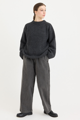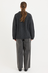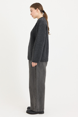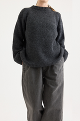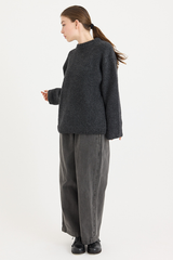 The Jako Jumper by Sono is knitted from 70% organic wool and 30% superfine alpaca, spun in Biella using 100% green hydro energy. The wool is ethically sourced, responsibly farmed, and GOTS-certified, while the yarn is dyed to Oeko-Tex® Standard 100 for a low-impact, chemical-free finish. With its oversized fit, wide neckline, and irregular hem and cuff tension, the Jako Jumper offers quiet warmth and effortless ease—a relaxed, timeless layer for everyday wear.