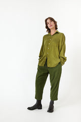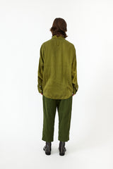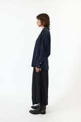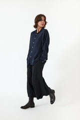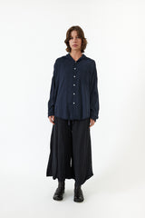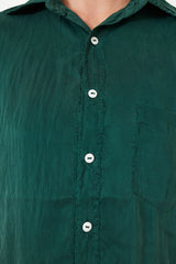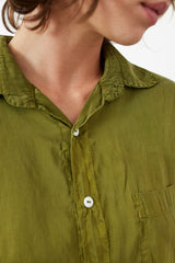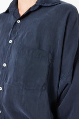 A classic shirt fashioned from soft silk, featuring a gently rounded hemline, single patch pocket to the left chest and contrasting white buttons. Dyed by hand several times to achieve a beautiful richness of colour. Garments are then hand washed and rung, to give a soft and luxurious feel.
