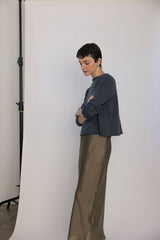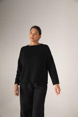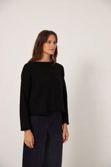 The original signature Doll's jumper, knitted in a soft mid-weight merino and designed to be thrown on in any season. Features a boat neck, a boxy fit, and rolled edges.