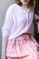 The Ida Shirt is a minimal and classic women’s long sleeve blouse crafted from beautiful soft cotton voile. Featuring an elegant mandarin collar and subtle A-line silhouette with a full button front (light coloured shell buttons).
