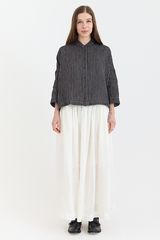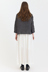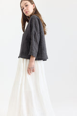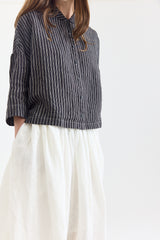 Metta’s sweet, boxy Rae Shirt is back — now in this season’s popular Black and White Stripe, crafted from fine-weight linen. Featuring a softly rounded collar, cropped sleeves, and a button-up front, the Rae is our go-to for pairing with trousers or voluminous skirts like the Ulla.