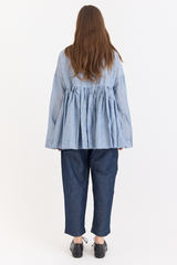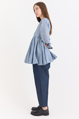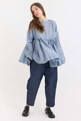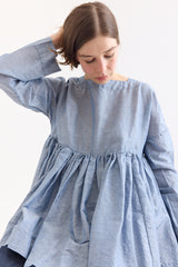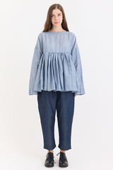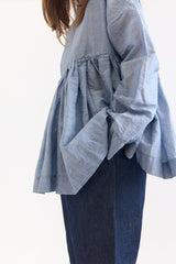 A timeless silhouette from Casey Casey, reimagined under the Orsan line. This twill top is crafted from a lightweight linen-cotton blend and features a clean geometric neckline, long sleeves, and an empire-style waist with soft gathers that bring movement and structure. A refined piece with a sense of ease and quiet distinction.