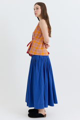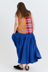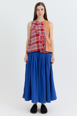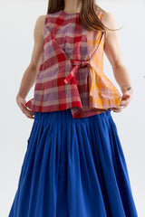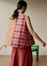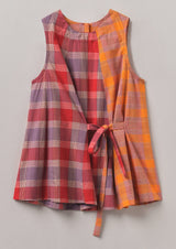 This cotton top from TOAST is crafted from panels of two vibrant contrasting checks. Cut with a swing silhouette and a crew neckline, it features an asymmetric tie that can be worn loose or fastened, and a corozo button closure at the back neck. A versatile piece designed to be worn tied or untied, offering different moods in one garment.