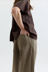 This Camp Shirt by Wright + Doyle is crafted from lightweight Tencel. It features a utility-style front patch pocket, a front button opening, and a back vent. The shirt is uniquely constructed without armholes or shoulder seams, creating a clean, fluid silhouette. A relaxed style designed to elevate the everyday wardrobe.