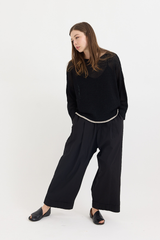 These pants by Veritecoeur are crafted from a lightweight silk and cotton blend. Featuring an elastic waistband, wide fit, seam pockets, folded hem details, and a relaxed fit. Perfect for elevating your everyday wardrobe.