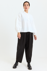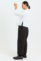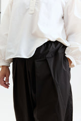 The Oterro Trousers in Black by Whiteread are crafted from a lightweight cotton and elastane blend, offering comfort with a touch of stretch. Designed with an elasticated waistband, side slip pockets, and a wide-cut leg that tapers slightly, they also feature subtle front pleats below the waist. These free-flowing trousers bring ease and understated sophistication to your everyday wardrobe.