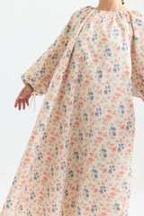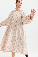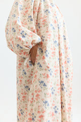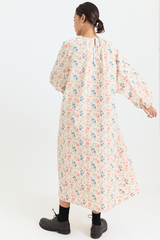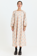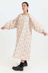The Apolune Dress in the Flora pattern by Whiteread is crafted from lightweight ripstop nylon, known for its subtle checkered weave that enhances durability while maintaining a soft, fluid drape. Designed with a voluminous silhouette, it features long sleeves with adjustable gathered ties at the cuffs, an adjustable gathered neckline with ties, and two side pockets. The romantic floral print creates an intriguing contrast with the modern, sculptural cut—an effortless statement piece for any season.