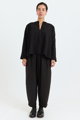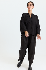 The Mona Shirt by Whiteread is crafted from midweight repurposed linen. It features a neckline with an internal tie and front slit, uncuffed long sleeves, a boxy silhouette, and side slits at the hem. A relaxed yet elegant shirt, true to Whiteread’s signature style.