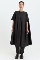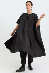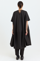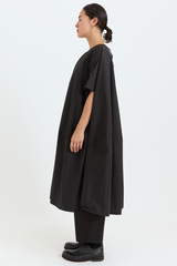 The Eclipse Dress in Black by Whiteread is crafted from a lightweight cotton and elastane blend. This voluminous, circle-cut silhouette features short sleeves, side seam pockets, and a round neckline with tie fastening. Effortless and versatile, it's perfect for layering throughout the seasons.
