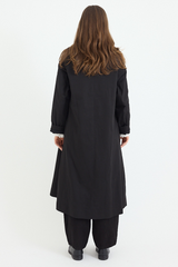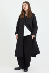 The Coat 03 by Whiteread is crafted from midweight cotton with a touch of elastane for comfort. It features a classic collar, a 3-button front opening, a back vent, and front side pockets. An elegant tailored coat, embodying Whiteread’s signature style.