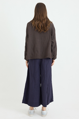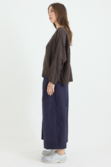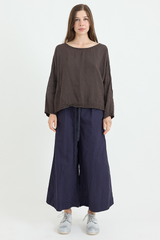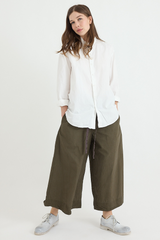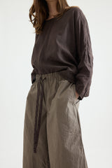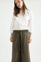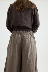 The WL90 pants from Chez Vidalenc are crafted from midweight cotton. They feature a wide-leg silhouette, an elasticised waistband with a silk drawstring, and side pockets. This versatile piece blends relaxed style with understated elegance.
