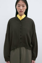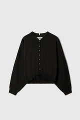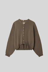 Crafted from a soft cotton, this cardigan will be a must-have in your transitional wardrobe. Loose fit and cropped shape, slightly shorter on the front, with buttoned placket and ribbed trims. Details include an asymmetric neckline and a v-opening on the back.