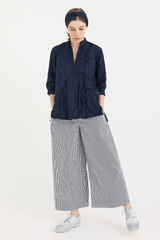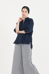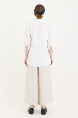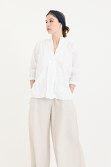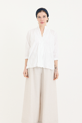The Kora Shirt features a small collar on a v-neckline, 3/4 length sleeves, and slits at the hems. It also features pleated detailing at the front, adding to the kimono inspired style. Crafted from smooth and lightweight cotton, its simple design makes it perfect for everyday wear, and can be styled up or down for any occasion
