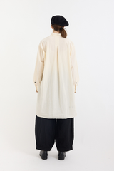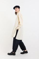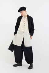 The Gosse Trousers by Klasica perfectly embody the art of crafting simple yet impactful pants through their expertly tailored cut. Featuring a bold yet classic design with a tapered fit, they are made from a medium-weight linen and wool pinstripe blend. Details include two pleats on each side, front slash pockets, belt loops, buttoned back pockets, and pleats at the hem. Fastened with five buttons, one of which is visible, these trousers blend timeless style with modern elegance.