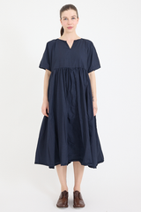 The Paloma Dress is an updated version of Metta's classic Flossie Dress an oversized style combining both structure and organic drape, the Paloma Dress has an elegant and slightly scooped neckline with v-notched detail, dolman half-sleeves and a dropped waist with gathering and generous volume through the skirt. Two hip pockets concealed in the side seams. A perfect statement piece or layering style. Available in Berry and Navy.