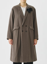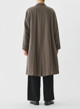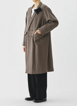 This Double Breasted Coat is made from a wool twill fabric in a beautiful cool toned hue. It features a mid-length design, partial button up closure, a deep neckline and 2 front pockets. This design is soft to the touch both outside and in, with a 100% cotton body lining.