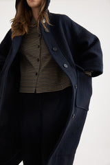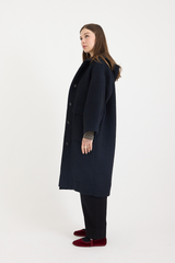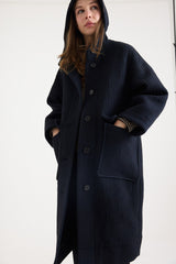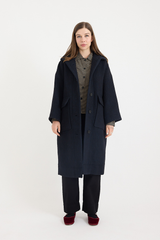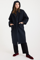 This Toast hooded coat is crafted from an Italian-woven blend of virgin wool and cotton. Designed with an easy A-line shape and dropped sleeves, it features patch pockets, and horn buttons at the front. Fully lined in cotton twill and finished with an internal hanging loop, it combines practicality with timeless style.